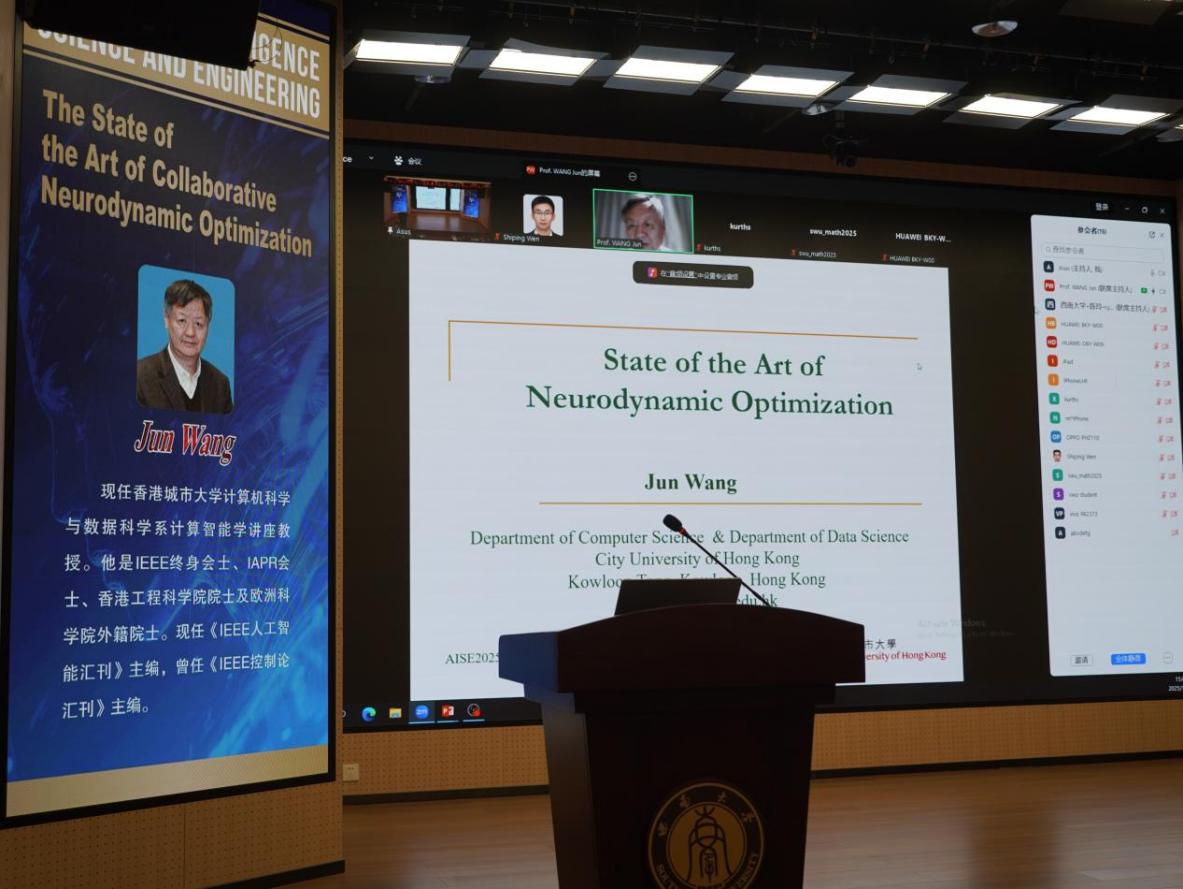 IEEE 终身会士、IAPR 会士、香港工程科学院院士及欧洲科学院外籍院士,中国香港城市大学 Jun Wang 教授,以《The State of the Art of Collaborative Neurodynamic Optimization》)为题,系统阐述了神经动力学优化的最新突破。具体而言,所提出的协作式神经动力学优化框架通过部署多个不同初始状态的优化模型实现分布式搜索,同时结合群智能(如粒子群优化)的元启发式规则,在神经元搜索局部收敛时重新定位以逃离局部极小值,逼近全局最优。