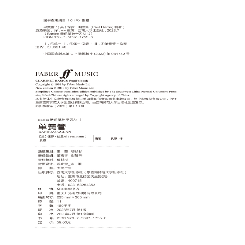 “Basics器乐基础学习丛书”是西南大学出版社与英国菲伯尔音乐出版公司联合开发的一套针对西洋乐器教学的基础教程,在原版教材的基础上,中央音乐学院管弦系专家团队联手编写,增加了具有浓郁民族风格的中国经典作品,中西合璧,浑然一体。本书是丛书中的《单簧管》,由二十二课构成,没有过多的理论知识,突出实用性的基本练习。书中除了一些基础练习和演奏提示外,还有一些音乐小游戏、知识问答等互动板块,趣味性较强。