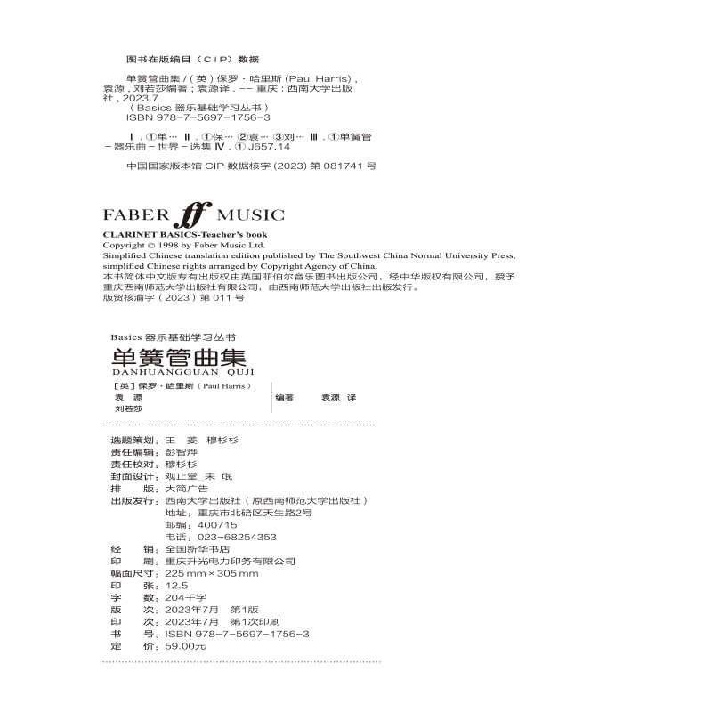 “Basics器乐基础学习丛书”是西南大学出版社与英国菲伯尔音乐出版公司联合开发的一套针对西洋乐器教学的基础教程,在原版教材的基础上,中央音乐学院管弦系专家团队联手编写,增加了具有浓郁民族风格的中国经典作品,中西合璧,浑然一体。本书是《单簧管》的配套图书,也可作为曲集单独使用。书中的乐曲配有钢琴伴奏谱或重奏谱,并配有伴奏音频和示范音频,购书后可获取音频进行练习,也可以利用伴奏音频直接进行舞台表演。
