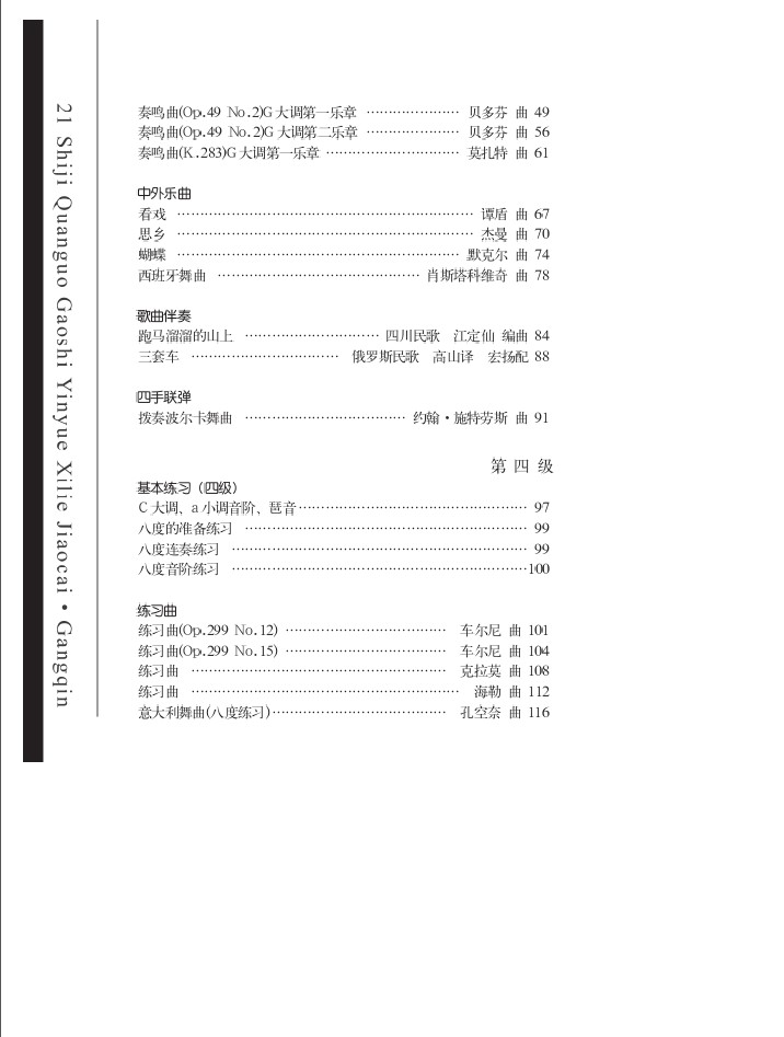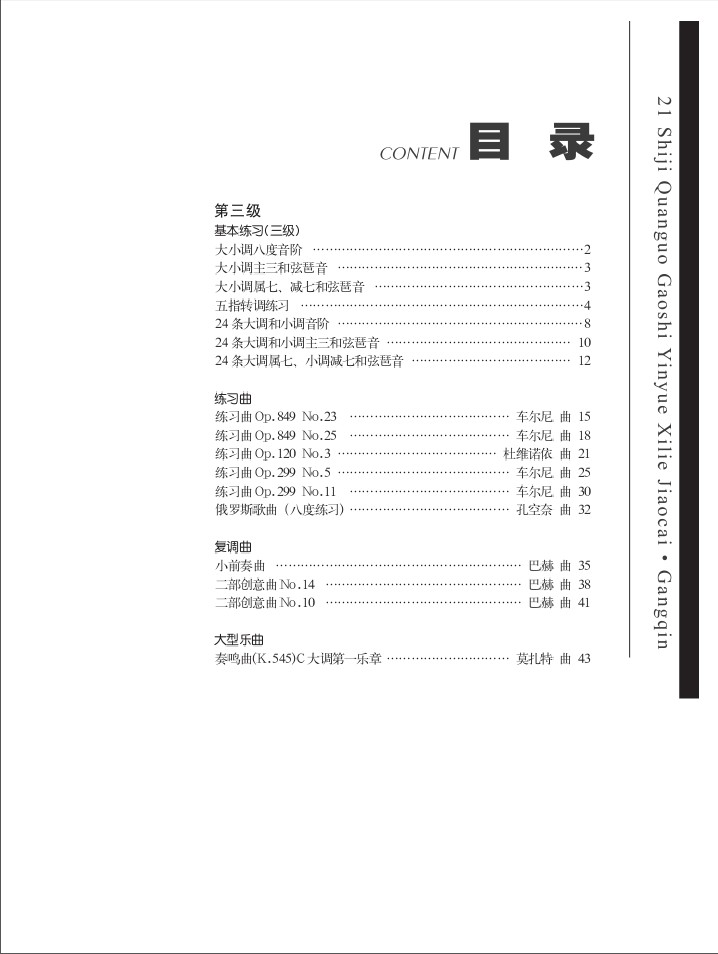 《钢琴教程》由浅入深共分4册。本册为三、四级,教学内容包括了相应级别的奏法练习、基本技巧练习、综合练习、基本练习、练习曲、复调曲、大型乐曲、中外乐曲、歌曲伴奏、四手联弹等,每首乐曲还配有教学提示。