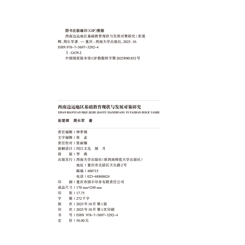 西南边远地区基础教育现状与发展对策研究-彭爱辉-9787569732924