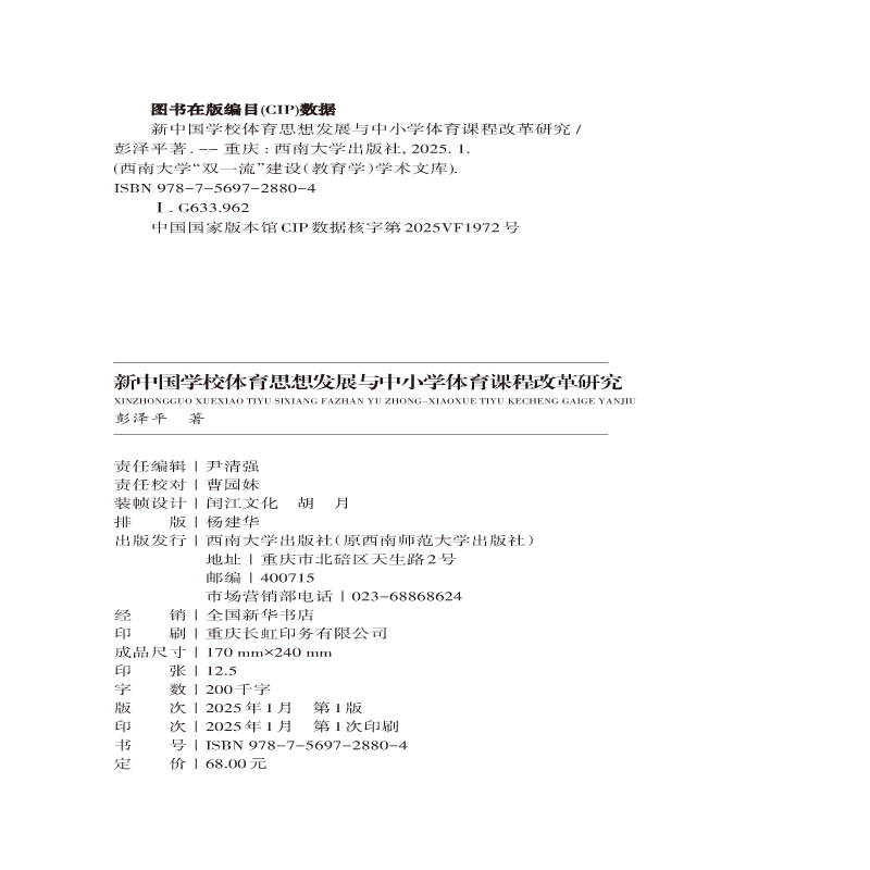 新中国学校体育思想发展与中小学体育课程改革研究-彭泽平-9787569728804