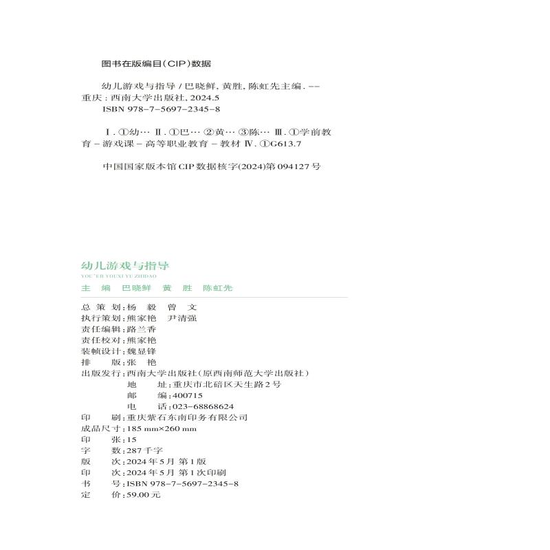 幼儿游戏与指导-巴晓鲜-9787569723458