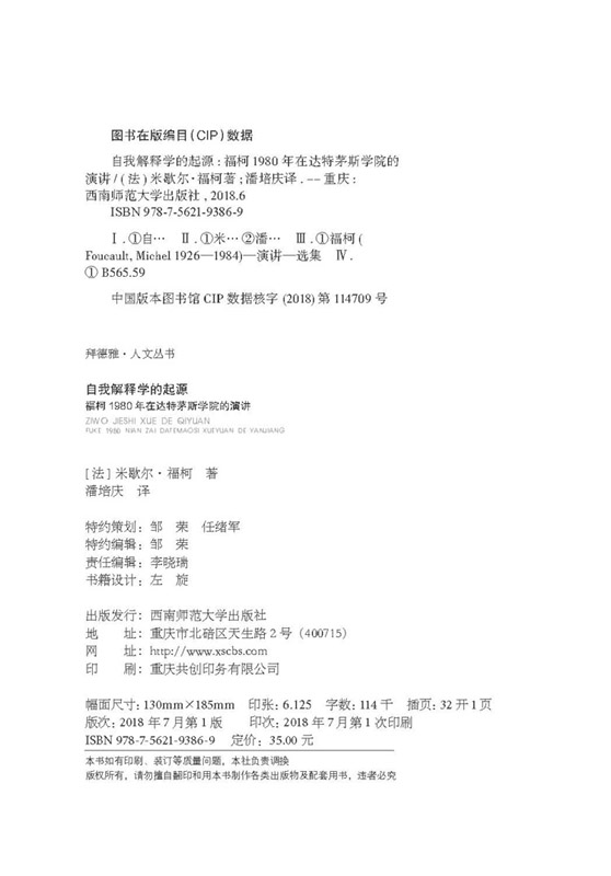 自我解释学的起源:福柯1980年在达特茅斯学院的演讲-米歇尔·福柯9787562193869