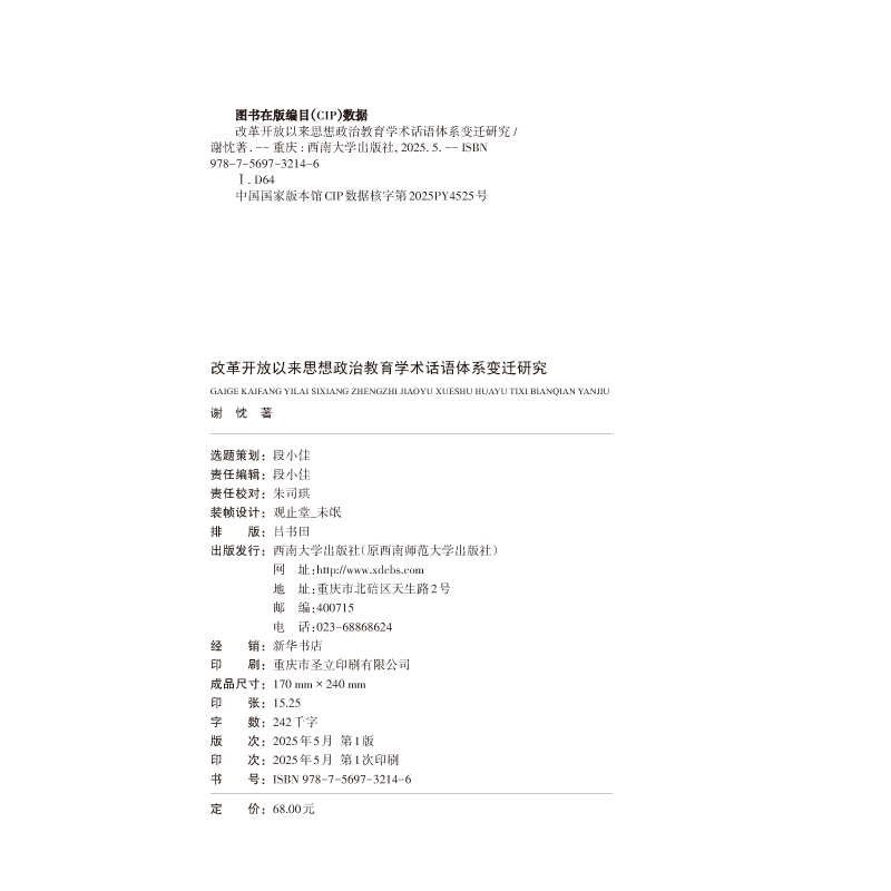 改革开放以来思想政治教育学术话语体系变迁研究-谢忱-9787569732146