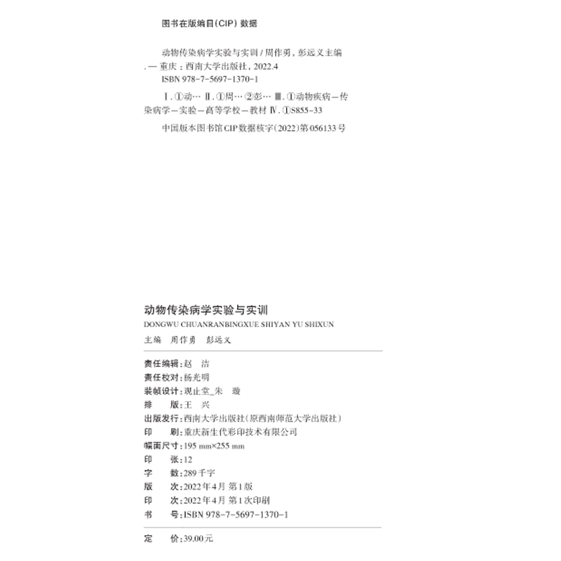 动物传染病学实验与实训/周作勇//彭远义9787569713701