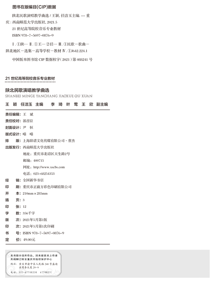 陕北民歌演唱教学曲选、王 颖 任洁玉 主编 李 琦 叶 莺9787569708769