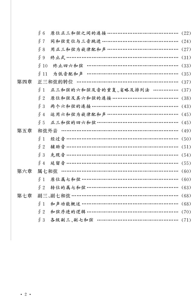 本教材自推出以来一直是我社的畅销教材之一,此次再版除完善了部分内容表述,还提供了教学课件和部分谱例的音频。篇章设置仍然与上一版大体相同,大致可以分为四个层次,第一部分从绪论到第四章“正三和弦的转位”,主要是最基础的和声理论,介绍基本的正三和弦构成方法和连接方法;第二部分从第五章“和弦外音”到第八章“守调模进”,介绍同一调性内进阶的和弦材料和连接方式;第三部分为第九章“副属和弦与离调”和第十章“转调、近关系转调”,讲述了离调和转调的相关处理方法,作为一本适合和声副科学生的基础性教材,程度到此较为适宜;第四部分可称“应用篇”,从第十一章到第十四章,介绍了民族风格音乐中的和声处理方法,合唱曲写作以及键盘类乐器伴奏写作的基础知识,有助于学生将理论知识应用到音乐实践中,极具实用性。