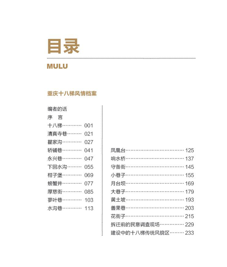 十八梯连接渝中上半城与下半城,位于重庆母城的核心区,具有独特的山城民居街巷风格,承载着老重庆人的城市生活记忆。但这些记忆随着十八梯片区的拆迁及保护性开发而终将逐渐淡去。本书以老照片的形式再现十八梯的原始风貌,同时搭配大量巴渝老言子,能唤起重庆人的记忆。另外,十八梯历来是渝中区独具特色的打卡点,而随着其保护性开发,将以全新的面貌展现在游客面前。本书对于十八梯的介绍,便于读者深入地了解十八梯的过往,对于十八梯的宣传具有积极意义。